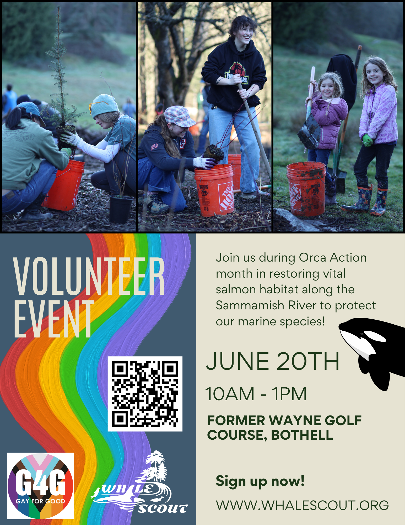 Whale Scout is partnering with Gay for Good to celebrate Pride Month and Orca Action Month! Members of G4G will be in attendance to speak about Pride Month and its importance.