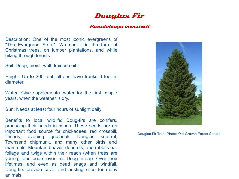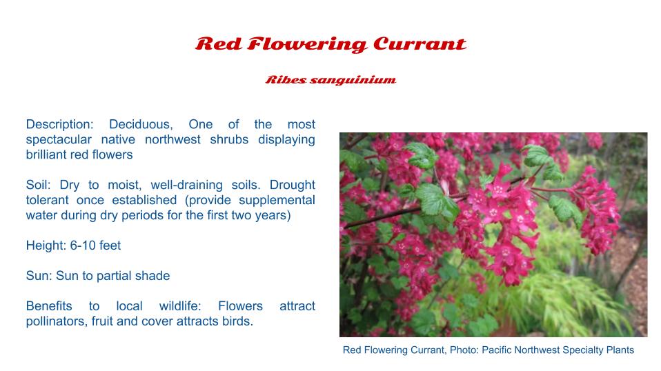 1. Please thoughtfully consider which plants will be the right fit for your garden or yard. King County has a helpful Native Plant Guide for Western Washington Yards.