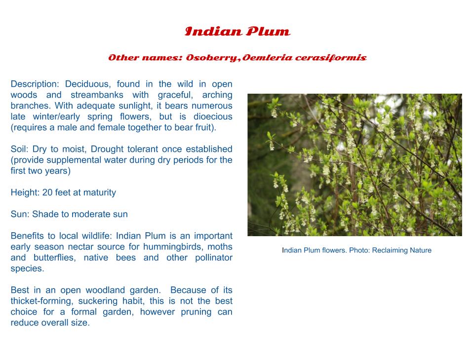 What’s in the kit? Native plant choices – Indian Plum, Red Flowering Currant, and Douglas Fir. Click the links above to learn more about each plant.